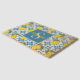 This unique fiber doormat features a blue French country tile lemon pattern that will add a touch of Mediterranean charm to your home. It is easily customizable with your monogram and name.