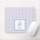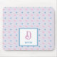 Monogram Name Blue & Pink Hearts Pattern Mouse Pad