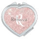 Monogram Name Blush Pink Diamond Stud Glam Girly Compact Mirror