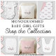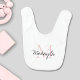 This baby girl's bib features an elegant monogram and name in black and blush pink. Easily customizable.