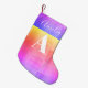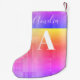 Make this holiday season merry and bright with this bright personalized Christmas stocking design. This monogram and name design has a faded check pattern in bright sunset colors, yellow, orange, pink and lilac. It has the name "Amelia" in stylish script and the monogram “A” in modern typography. You can easily add your name and initial, using the personalize this text box. to customize further check out the design editing tool. Happy Holidays! If you need help with personalization, matching products, or for a custom design contact me via zazzle chat or email: ursuladawnmoon@gmail.com