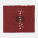 Monogram Name Burgundy Gray Herringbone Pattern Fleece Blanket