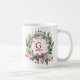 Celebrate the holidays in style with this elegant Monogram Name Christmas Greenery Coffee Mug. Featuring a festive greenery wreath surrounding your personalized monogram and name, this mug adds a sophisticated seasonal touch to your morning coffee or hot chocolate. Perfect for cozy winter mornings or as a charming holiday gift, this durable ceramic mug combines classic Christmas charm with a personal flair. Ideal for yourself or as a thoughtful gift, it's sure to spread holiday joy with every sip.
