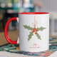 Monogram Name Christmas Holly Winter Floral Coffee Mug features a holly decoration in red and green with your personalized name and monogram in elegant red script below. Personalize by editing the text in the text boxes provided. Perfect for birthday, Christmas gifts, best friends and more. Designed by ©Evco Studio www.zazzle.com/store/evcostudio