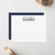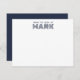 Monogram Name Dark Blue White Modern Stripes Note Card