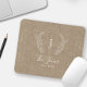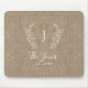 Custom white botanical monogram and family name modern elegant chic rustic stylish dark beige burlap personalized mousepad. +++++++ A modern gift for weddings, anniversaries, Thanksgiving, Christmas, or any other occasion.