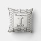 This monogram pillow is a great way to add an unexpected accent to your home or create a special keepsake for a wedding or housewarming. A silver gray geometric pattern appears against a white background on both the front and back of this pillow. The letter "T" is featured in a square along with the family name and year. The letter, year, and your name can quickly and easily be personalized.