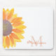 This floral mouse pad is decorated with a yellow watercolor sunflower.