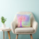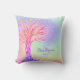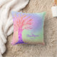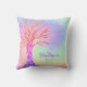 This girly pillow is decorated with a tree and a background in rainbow colors with faux sparkling stars.