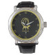 Monogram Name Initial Kitty Cat Lover Black Gold Watch