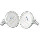 Monogrammed blue and gold on silver cufflinks. A great wedding gift for the groom. Add the bride and grooms names, their new last name initial, and the wedding date.