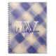 Monogram name navy blue cream gingham tartan plaid notebook