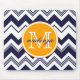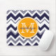 Monogram Name Navy Blue White Chevron Pattern Mouse Pad