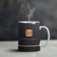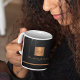 Luxury exclusive looking office or personal monogrammed coffee mug featuring a faux copper brushed metallic gold square with your monogram name initials and a metal look stripe over a stylish black faux leather texture (PRINTED) background. ++++++++++++++ Suitable for small business, corporate or independent business professionals, personal branding or stylists specialists, makeup artists or beauty salons, boutique or store managers.
