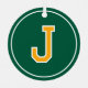 Create your own keepsake ornament with this stylish monogrammed design! This simple, stylish design features sports jersey inspired typography, with a retro block font. A circle-shaped template personalized with a first name initial, a favorite photo, and a name. A simple, stylish design, perfect for photos of kids, teenagers, family and pets. Printed colors: dark green, orange yellow gold and white.