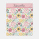 Monogram Name Pink Yellow Blue Floral Fleece Blanket
