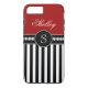 Monogram Name Red Black Stripes Pattern Case-Mate iPhone Case