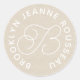 Add your logo style monogram to cream envelope seal stickers with your flourish script initial and sans serif name in a circular logo style. 20 seals per sheet. Order in larger quantities for more savings.