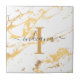 Monogram Name Script Initial Gold Marble Pattern Ceramic Tile
