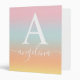 Monogram Name Script Text Gradient Ombre Pink 3 Ring Binder