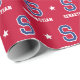 Elevate your gift-giving with monogrammed wrapping paper! This sports jersey-style pattern features a retro block font, stars, and is personalized with a monogram initial and the recipient's name. You can also customize the background color by using the design editor tool. A stylish design that would suit many occasions, including Christmas, birthdays, graduations and more — perfect for all ages, from kids and teens to family and friends! This seamless pattern gift wrap is printed on premium quality paper with your choice of a matte or glossy finish. Different length rolls are available from 6 feet - 60 feet. colors: red, dark blue navy and white. Colors: crimson red, dark blue navy and white.