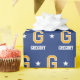 Elevate your gift-giving with monogrammed wrapping paper! This sports jersey-style pattern features a retro block font, stars, and is personalized with a monogram initial and the recipient's name. You can also customize the background color by using the design editor tool. A stylish design that would suit many occasions, including Christmas, birthdays, graduations and more — perfect for all ages, from kids and teens to family and friends! This seamless pattern gift wrap is printed on premium quality paper with your choice of a matte or glossy finish. Different length rolls are available from 6 feet - 60 feet. colors: red, dark blue navy and white. Colors: yellow gold, dark blue navy and white.