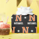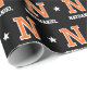 Elevate your gift-giving with monogrammed wrapping paper! This sports jersey-style pattern features a retro block-style font, stars, and is personalized with a monogram initial and the recipient's name. You can also customize the background color by using the design editor tool. A stylish design that would suit many occasions, including Christmas, birthdays, graduations and more — perfect for all ages, from kids and teens to family and friends! This seamless gift wrap is available with a matte or glossy finish. Printed colors: orange, black and white.