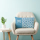 Monogram Name Teal and White Lumbar Pillow
