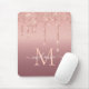 Monogram Name Text Rose Gold Blush Glitter Drips Mouse Pad