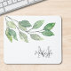 Monogram Name Watercolor Greenery Mouse Pad