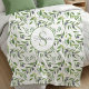 Monogram Name Watercolor Olive Pattern Fleece Blanket