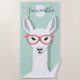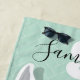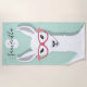 Monogram Name White Green Llama Flamingo Glasses Beach Towel