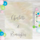 An elegant outdoor wedding rug featuring a light peach hue with a mother-of-pearl sheen. At its center, the couple's names are monogrammed in an elegant gray script, providing a sophisticated contrast against the delicate backdrop. Intricate patterns may surround the monogram, enhancing its luxurious yet simple feel.