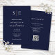 Monogram Navy Blue And Gold QR Code Wedding Invitation