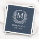 Monogram Navy Blue Crest Botanical Wedding Napkins