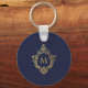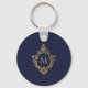 Monogram Navy Blue Elegant Faux Gold Crest Initial Keychain