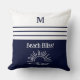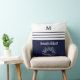 Monogram Navy Blue Nautical Stripes Beach House Throw Pillow