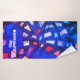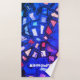 Bright bold royal blue bath towel set that will stand out and be admired for sure.Customizable personalizable wit a name for example if you wish, or you can delete the text . Colorful vibrant vivid design inspired from my unique contemporary textile embroidery.The composition evokes a stained glass window from a medieval gothic cathedral. Nuances of blue, navy, red, orange, pink, purple, lavender, violet, mauve for this original design. For you to enjoy using it or as a creative thoughtful and useful gift under 50 dollars for her.