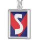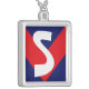 Monogram | Navy Blue & Red | Any Shape | Custom Silver Plated Necklace
