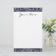Monogram Navy Blue Whimsical Ikat Floral Pattern Stationery