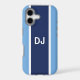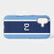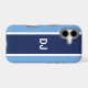 Now your phone can look really stylish with this tough case decorated with a bold navy stripe on a blue background and your custom initials.