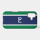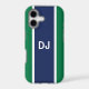 Now your phone can look really stylish with this tough case decorated with a bold navy stripe on a green background and your custom initials.