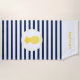 Get ready for the beach with this personalized beach towel featuring a navy stripe pattern with yellow pineapple icon.