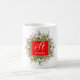 Monogram Red Christmas Greenery Coffee Mug. This festive mug features a vibrant red monogram design, complemented by lush Christmas greenery. The design includes holly berries on a crisp white background, evoking the spirit of the holiday season. A perfect Holiday's gift, this monogrammed coffee mug adds a personal touch to any Christmas celebration. It's an ideal present for friends, family, or colleagues, bringing warmth and cheer with every sip.