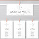Minimalist Monogram Olive Leaf Branch Garden Wedding Table Number Seating Charts Card with Guest Names. All the texts are pre-arranged for you to personalize easily and quickly with your own details.