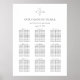 Minimalist Monogram Olive Leaf Branch Wedding 9 Table Seating Charts Poster. All the texts are pre-arranged for you to personalize easily and quickly with your own details.