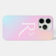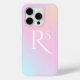 Monogram Ombre Holographic Pink Girly Personalized iPhone 15 Pro Phone Case features a pink and blue holographic background with your personalized monogram in the center. Personalize by editing the text in the text boxes provided. Designed by ©Evco Studio www.zazzle.com/store/evcostudio