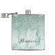 Monogram Ombre Mint Green Marble Glitter Flask