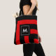 Elegant modern monogram on black and red striped Tote Bag. Simple yet elegant design! Monogram only on the front side.