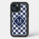 Monogram on Navy White Buffalo Check Pattern Otterbox iPhone Case